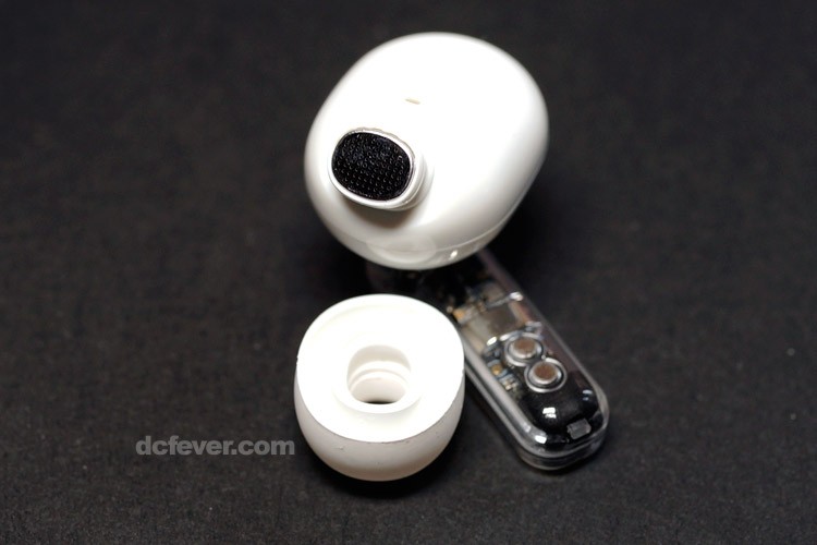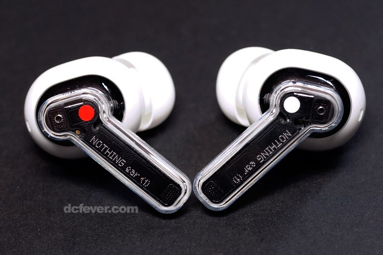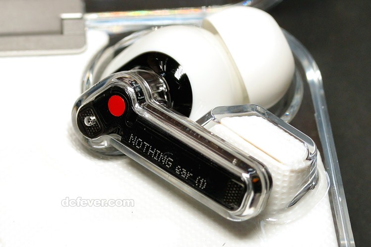 论产品设计,Nothing ear (1) 采用透明耳机壳,带金属网的收音咪呈现在用家眼前非常吸睛。带“棍仔”设计的它,在“棍仔”身上加入像 LED 效果的 “NOTHING ear (1)”字样,如果看官方图,会有误以为棍仔部份加入单色 LED 屏幕的错觉。带椭圆形的导管与耳胶,亦有助戴感更加稳健。
