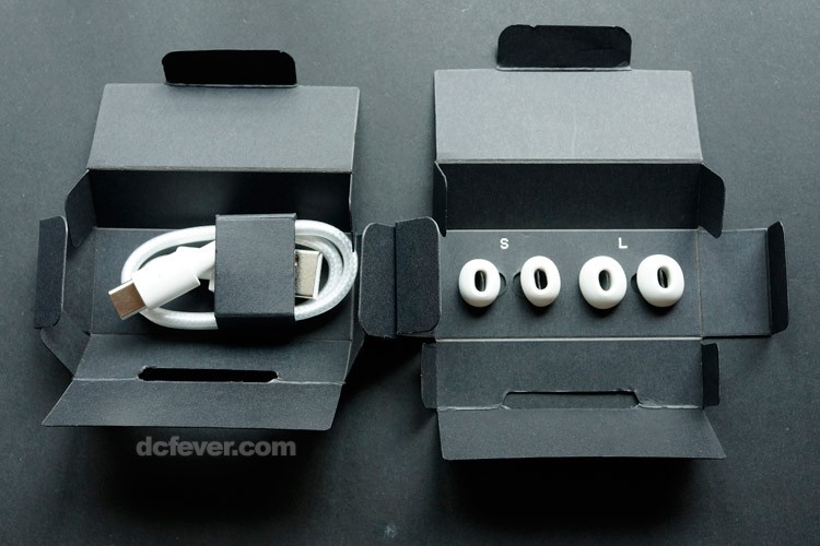 ▲包装盒设 USB-C 线及各尺寸的耳胶