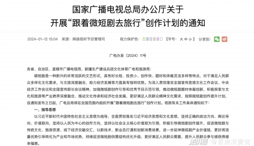 就在今年初,国家广播电视总局办公厅发布了“跟着微短剧去旅行”创作计划,把文旅和微短剧结合在一起,提出“创作播出100部‘跟着微短剧去旅行’主题优秀微短剧,推动一批实体取景地跟随微短剧的热播‘出圈’”。