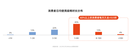 12 月 16日,上海讯——《2025人体工学座椅消费趋势报告》指出,快节奏的生活中,座椅功能正在从工具转变为生活中的情感陪伴者。CBNData调研显示,超过60%的用户每天座椅使用时间超过5小时,座椅的设计被赋予更多情绪诉求,其中,05后/90后消费者对座椅的情绪疗愈功能表现出更强的偏好。当“久坐”成为当代职场与家庭生活中最普遍的身体状态,围绕坐姿健康的问题,已不再停留在“是否舒适”的主观感受层面,而是进入到人体工学椅结构是否科学、支撑是否长期有效、设计是否符合人体工效学标准的理性讨论阶段。